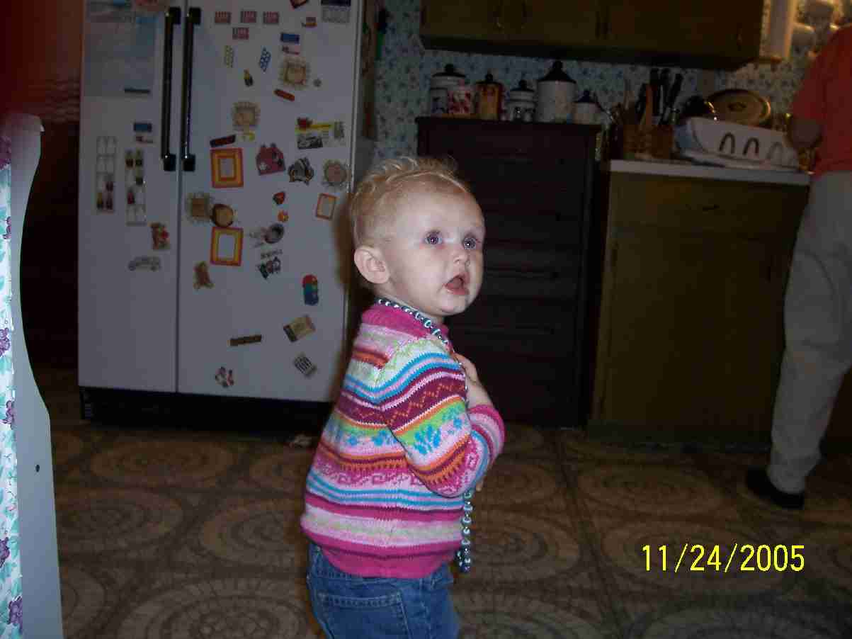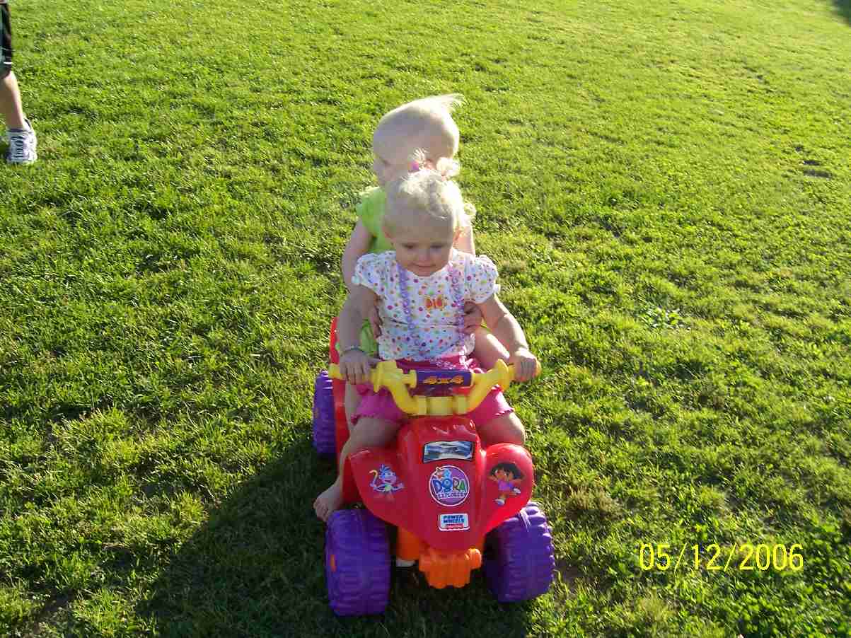 As you have probably guessed this is Destrie. She is a delight just like her big sister. Destrie is now three years old. Destrie loves playing outside especially riding her four-wheeler. She loves to go visit her MeeMee and Pappy. And she never tires of her Uncle Daniel and Pappy chasing her around. She also loves anything that has to do with Dora the Explorer. Just like most ladies, she loves her jewelry. Right now it's beaded necklaces but in a few years it will probably be diamonds. Destrie is our second granddaughter and a real joy. She is truly a blessing to us.